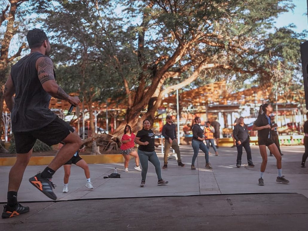 En marco del calendario de actividades del Mes de la Mujer, la Municipalidad de Sierra Gorda realizó clases de zumba abiertas a la comunidad en las localidades de Sierra Gorda y Estación Baquedano, instancia que contó con la participación del bailarín Iván Cabrera.
